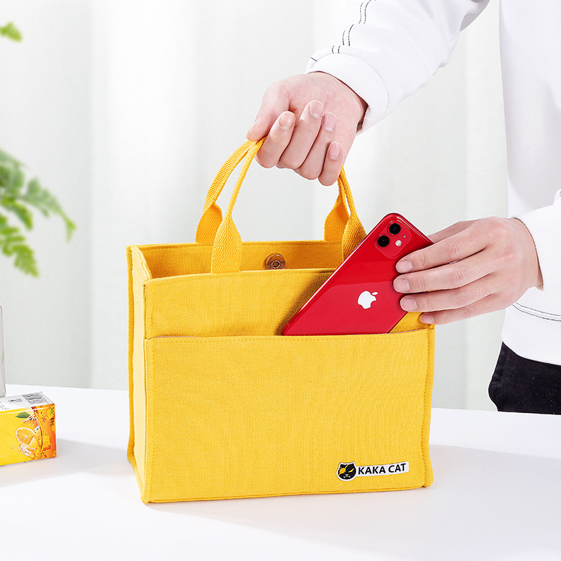 外側と内側にポケットが付いており、お弁当箱だけでなくスマートフォンやハンカチなどの小物も整理して収納できます。