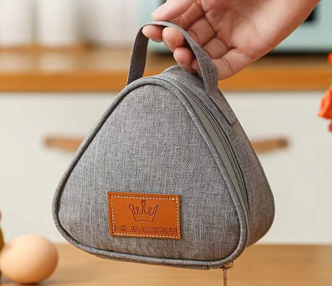 おにぎりのような可愛らしい三角形デザインが特徴的なランチバッグです。 コンパクトなサイズ感で持ち運びやすく、手提げハンドル付きで通勤や通学に最適です。 保冷機能を備えた内側素材により、お弁当や飲み物の鮮度をしっかりキープします。 ファスナー開閉でお弁当の出し入れもスムーズです。 シンプルで飽きのこないデザインは男女問わずお使いいただけます。