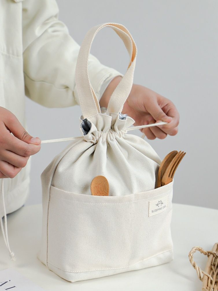 巾着式の開閉で中身をしっかり守る機能的なランチバッグです。 内側には保冷素材を使用し、お弁当や飲み物の鮮度を長時間キープします。 外側には便利な前面ポケットが付いており、箸やスプーンなどの小物を収納できます。 丈夫な持ち手で持ち運びもしやすく、通勤通学やピクニックに最適です。 ナチュラルな風合いで毎日使いたくなるデザインが魅力のアイテムです。